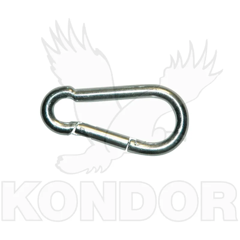 Jednoduchá karabina (hasičská karabina). Nosnost 120 kg. Velikost 60 mm, síla materiálu 6 mm.