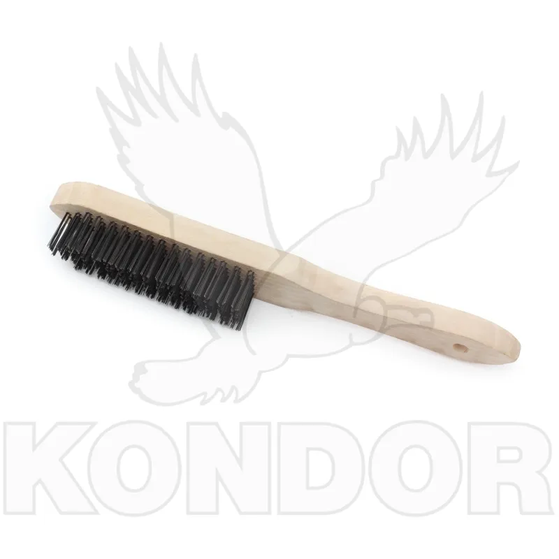 Ruční kartáč určený na mechanické čištění nečistot. Ocelové štetiny. Dřevěnná rukojeť.