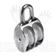Dvojitá závěsná kladka s nylonovým kolečkem pro zavěšení lana nebo provazu. Určeno pro vytažení břemene do hmotnosti 200 kg. Pro lanko do průměru 9 mm. Průměr kolečka 40 mm.