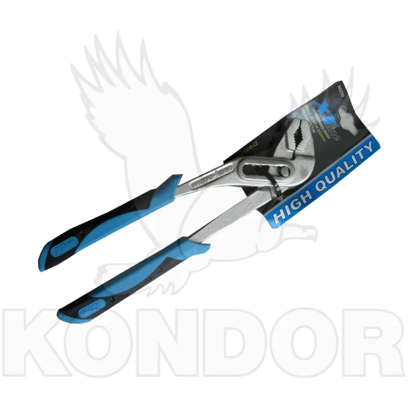 Instalatérské kleště s jemným nastavením pro optimální přizpůsobení různým velikostem obrobků a ergonomickou polohou rukojetí. Nastavení stisknutím tlačítka přímo na obrobku. Pohodlná gumová rukojeť. Velikost 250 mm.