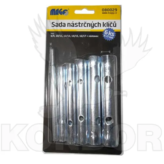 Sada trubkových (nástrčných) klíčů s nástavcem.