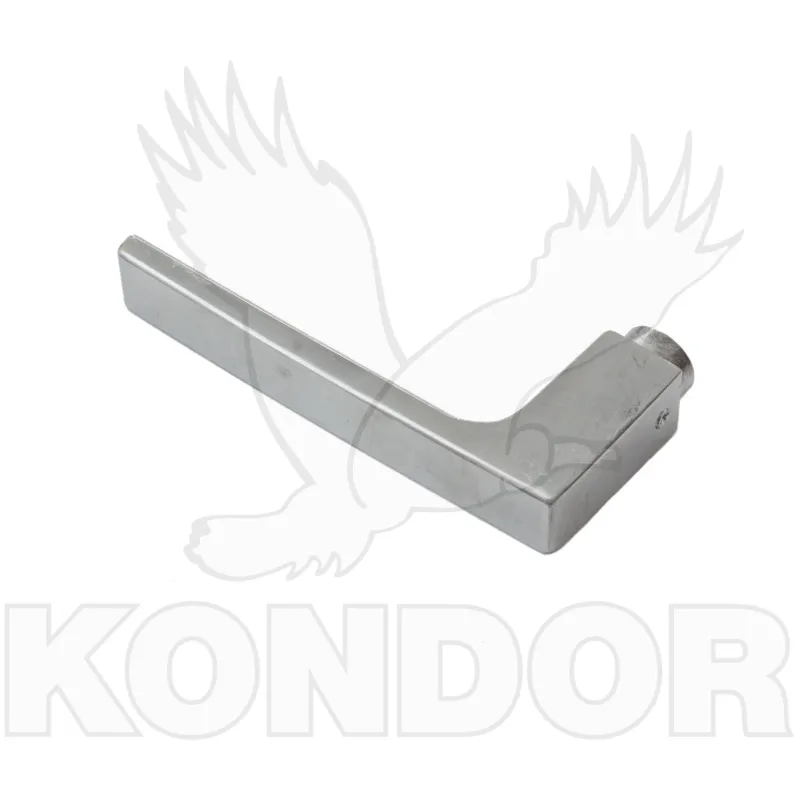 Klasická hliníková klika bez trnu pro otevírání dveří. Povrch je leštěn do vysokého lesku.