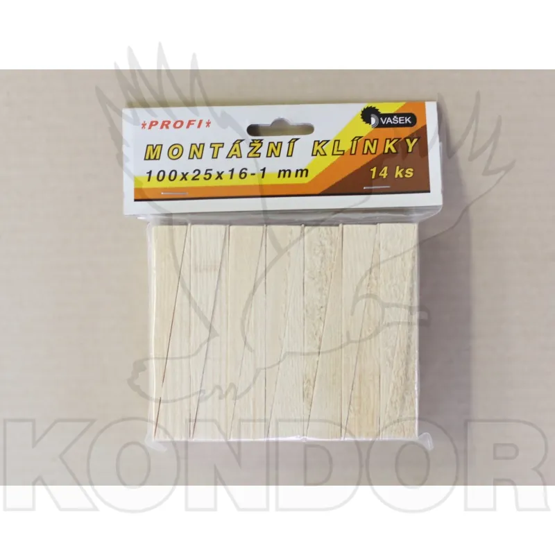 Montážní klínky pro zajištění předmětů. Rozměr 100 x 25 x 16 mm. Balení obsahuje 14 ks.