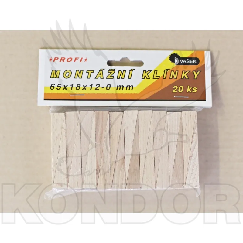 Montážní klínky pro zajištění předmětů. Rozměr 65 x 18 x 12 mm. Balení obsahuje 20 ks.