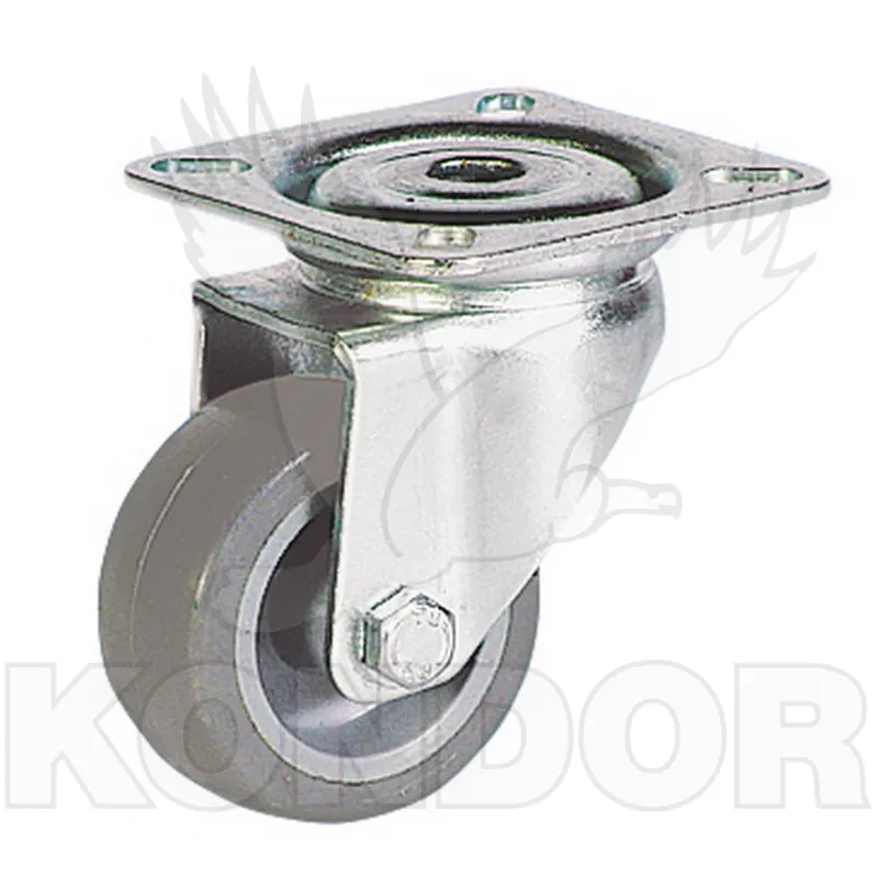 Otočné kolečko. Disk z polypropylenu, termoplastická gumová obruč, kluzné uložení. Maximální zatížení 55 kg. Průměr 50 mm.