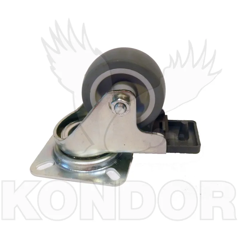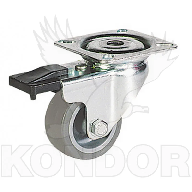 Otočné kolečko s brzdou. Disk z polypropylenu, termoplastická gumová obruč, kluzné uložení. Maximální zatížení 55 kg. Průměr 50 mm.