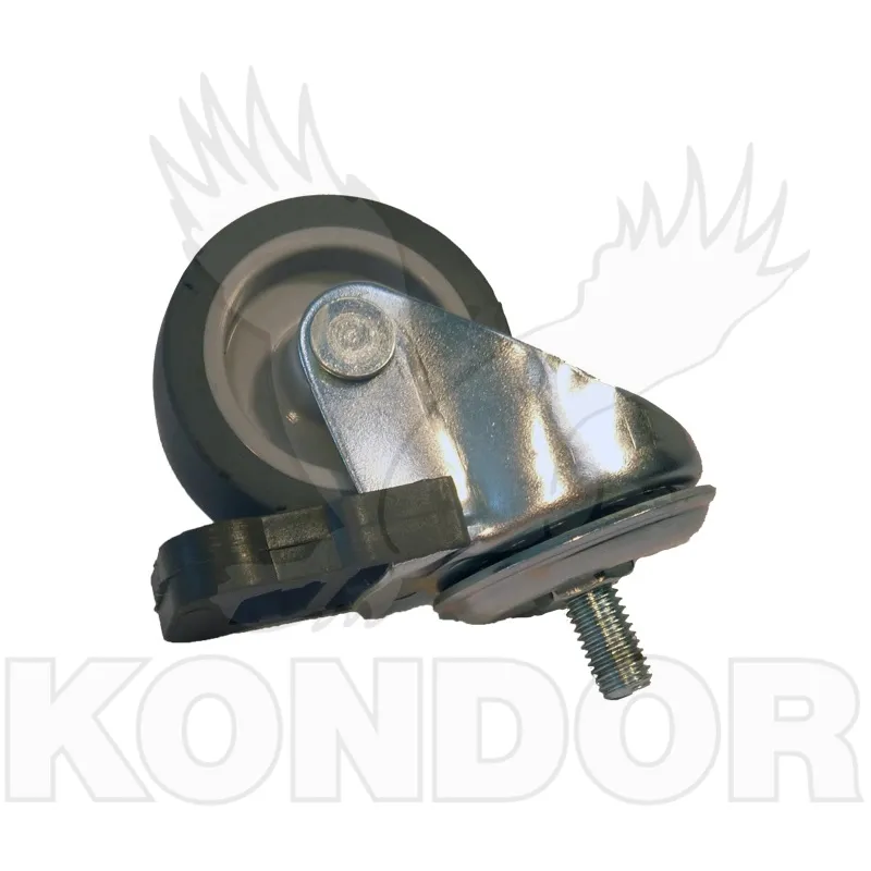 Otočné kolečko s brzdou. Disk z polypropylenu, termoplastická gumová obruč, kluzné uložení. Maximální zatížení 55 kg. Průměr 50 mm.