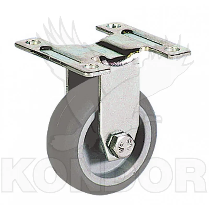Pevné kolečko. Disk z polypropylenu, termoplastická gumová obruč, kluzné uložení. Maximální zatížení 55 kg. Průměr 50 mm.