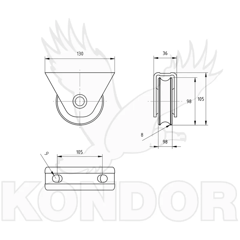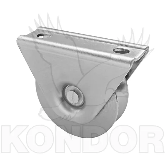 Pojezdová kladka pro posuvné kolečkové brány. Průměr kolečka 100 mm. Celková výška H (brány nad zemí) = 120 mm. Jednoložisková. Určená k přišroubování do rámu. Žárově zinkovaná. Maximální hmotnost brány 400 kg.