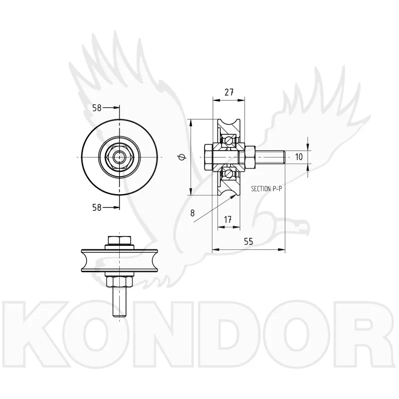 Pojezdové žárově zinkované jednoložiskové kolečko se šroubem M10x45 a matkou. Průměr kolečka 60 mm. Určené pro kolečkové (pojezdové) brány maximální hmotnosti 200 kg. Pro kolejnice tvaru "U".