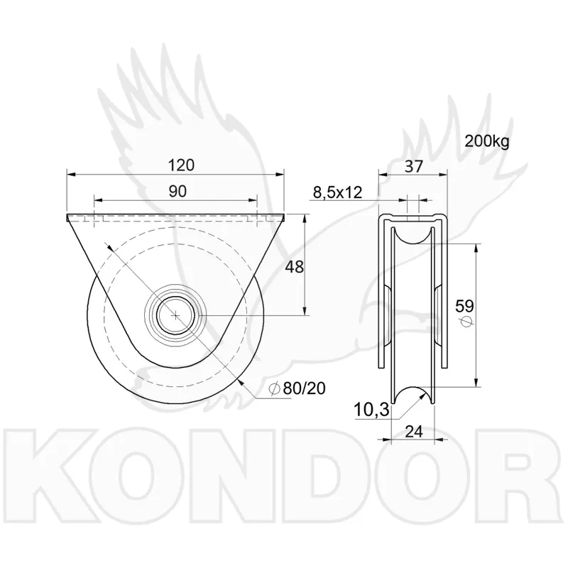 Kolečko od předního italského výrobce Combi Arialdo s povrchovou pozinkovou úpravou a použitím pro posuvné brány.