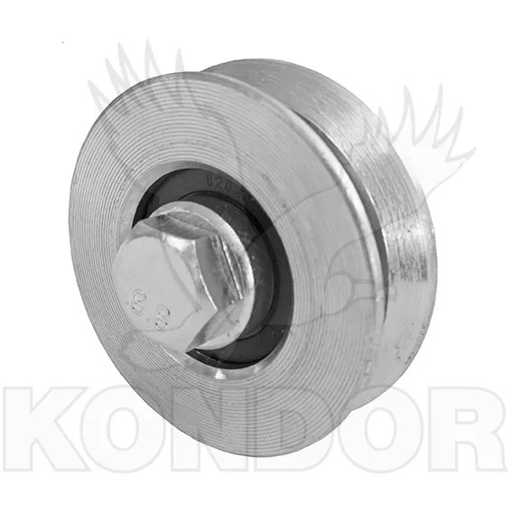Pojazdové koliesko so skrutkou pre posuvné kolieskové brány, priemer 100mm, jednoložiskové, určené pre koľajničky typu "V", žiarovo zinkované. Pojezdové žárově zinkované jednoložiskové kolečko se šroubem M14x60 a matkou. Průměr kolečka 100 mm. Určené pro kolečkové (pojezdové) brány maximální hmotnosti 400 kg. Pro kolejnice tvaru "V".