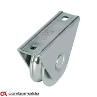 Ocelové vodící kolečko o průměru 100 mm s držákem tvaru V pro pojízdnou bránu o celkové hmotnosti do 350 kg. Povrchová úprava - zinek.