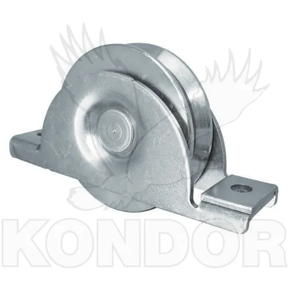 Pojezdová kladka s držákem pro posuvné kolečkové brány maximální hmotnosti 180kg. Průměr kolečka 100 mm. Celková výška H (brány nad zemí) = 44 mm. Jednoložisková. Určená k přišroubování do rámu.