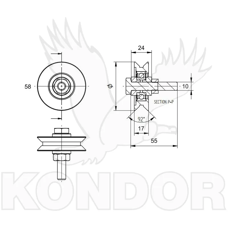 Pojezdové kolečko se šroubem pro posuvné kolečkové brány, průměr 60mm, jednoložiskové určené pro kolejnice typu V, žárově zinkované.