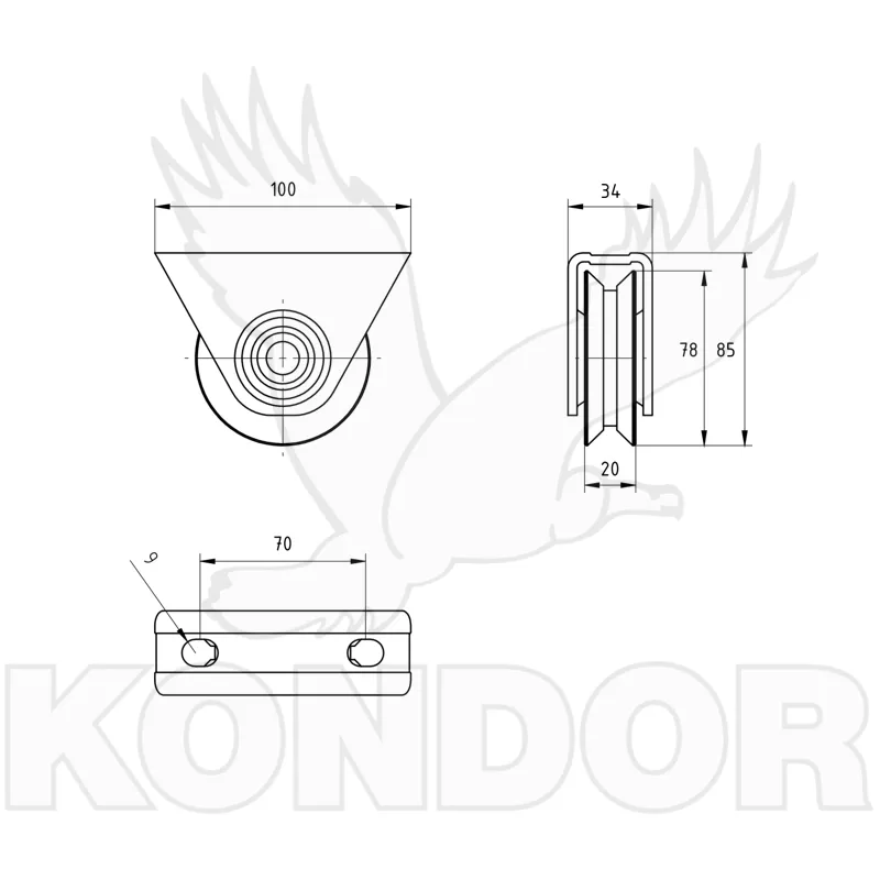 Pojezdová kladka pro posuvné kolečkové brány. Průměr kolečka 80 mm. Celková výška H (brány nad zemí) = 95 mm. Jednoložisková. Určená k přišroubování do rámu. Žárově zinkovaná.
