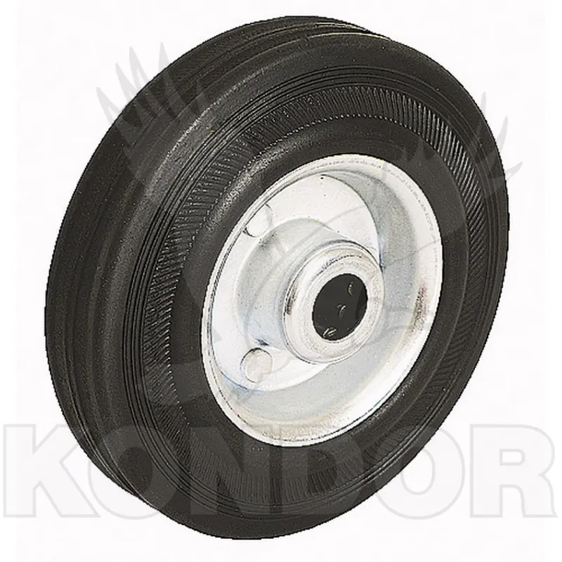 Samostatné kolečko se standardní gumovou obručí. Jehlové ložisko, plechový disk. Maximální zatížení 100 kg. Průměr 125 mm.