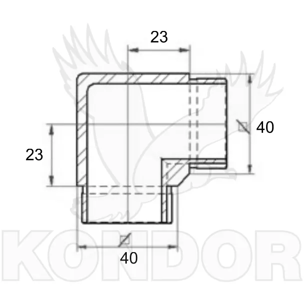 Přechod madla 40×40×2 z nerezu.