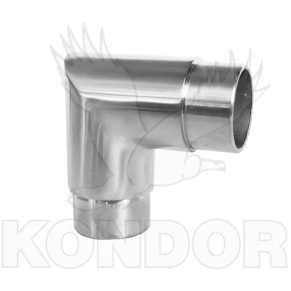 Nerezový přechod madla – koleno ostré 90°. Lepený spoj s madlem o průměru 42,4 x 2 mm. Materiál AISI 304 v povrchové úpravě brus K320.