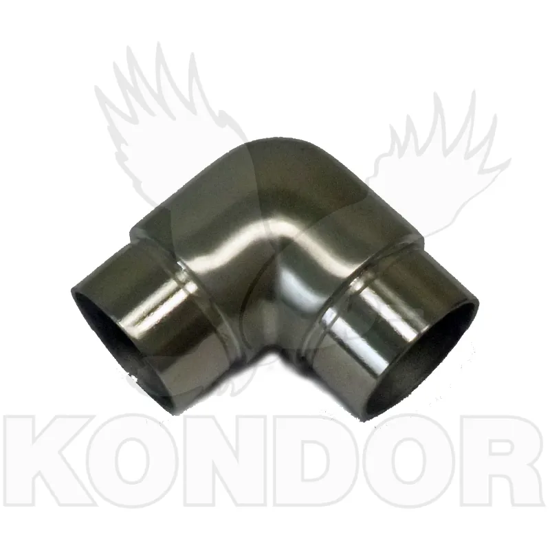 Nerezový přechod madla – koleno oblé 90° (lepený spoj). Rozměry 42,4 × 2 mm. Materiál AISI 304 v povrchové úpravě brus K320.