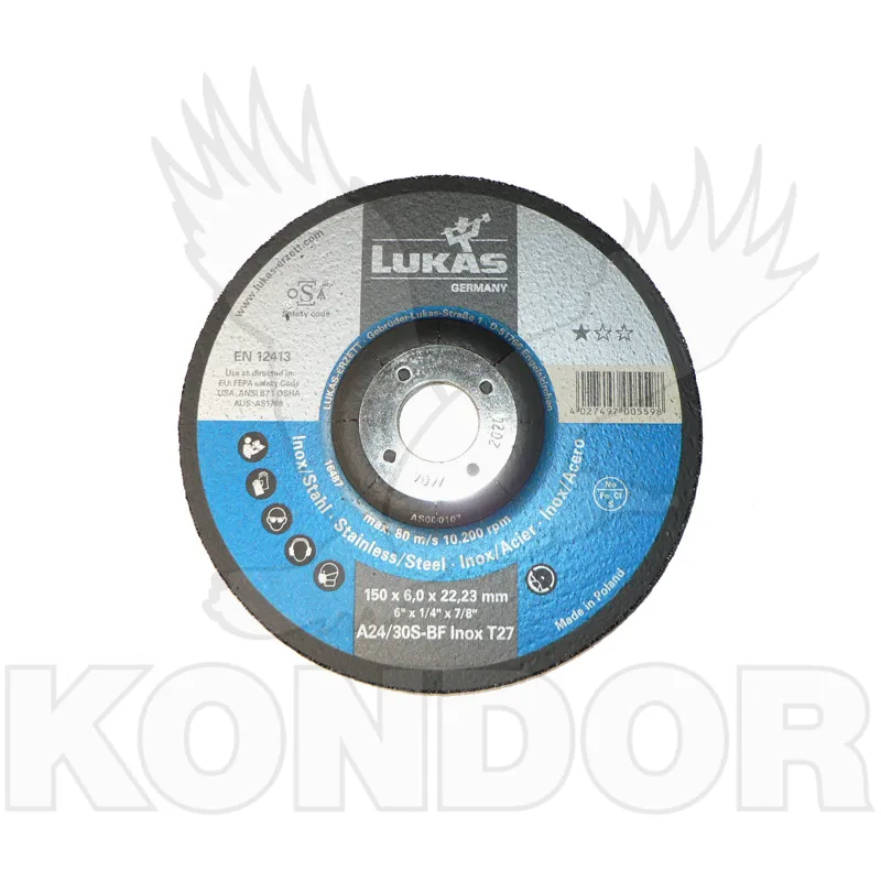 Brusné kotouče jsou vytvořeny pro brusné a hrubovací práce na běžné černé oceli. Jsou určeny pro úhlové brusky. Šířka 150 mm. Tloušťka 6,4 mm. Otvor pro nástavec brusky 22,2 mm.