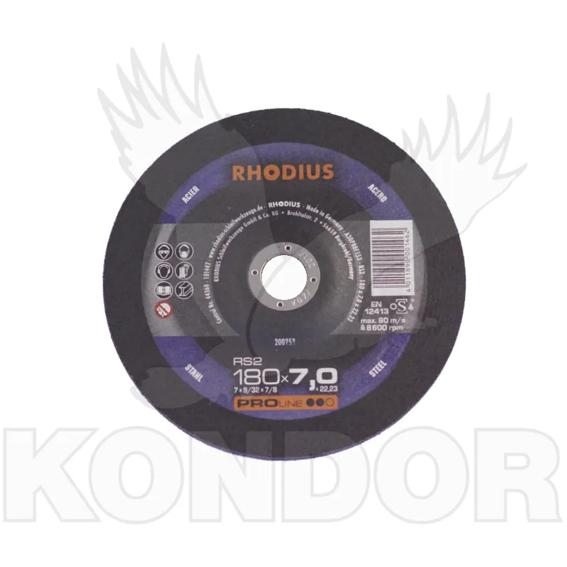 Hrubovací kotouč se speciální krycí vrstvou, která zajišťuje nepřetržitý chod bez vibrací, rovnoměrné opotřebení a téměř žádné vylomení okrajů. Oproti lamelovým kotoučům se vyznačují vysokým výkonem obrábění, ale i dlouhou životností. K častým způsobům použití hrubovacích kotoučů patří: příprava svárových švů, odjehlování, vyrovnávání, výbrus rohů a hran, vyrovnávání svarových švů. Použití materiál – korozi a kyselinovzdorné oceli, vysokopevnostní / vysokolegované oceli, kalené oceli, konstrukční oceli, šedá litina a Hardox. Průměr kotouče 180 mm, síla kotouče 7 mm, upnutí 22,2 mm.