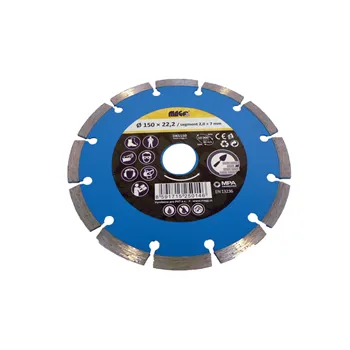 Profesionální segmentový diamantový kotouč vysoké kvality, určený pro mokré i suché řezání betonu, cihel, zdiva, kamene, pískovce, porobetonu, zámkové dlažby, střešních tašek. Kotouč je opatřen diamantovou vrstvou s vysokým obsahem diamantového prachu a kvalitně zpracovaným napojením na nosný disk kotouče. Průměr 150 mm. Průměr otvoru 22,2 mm.