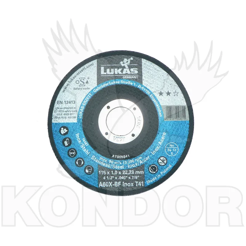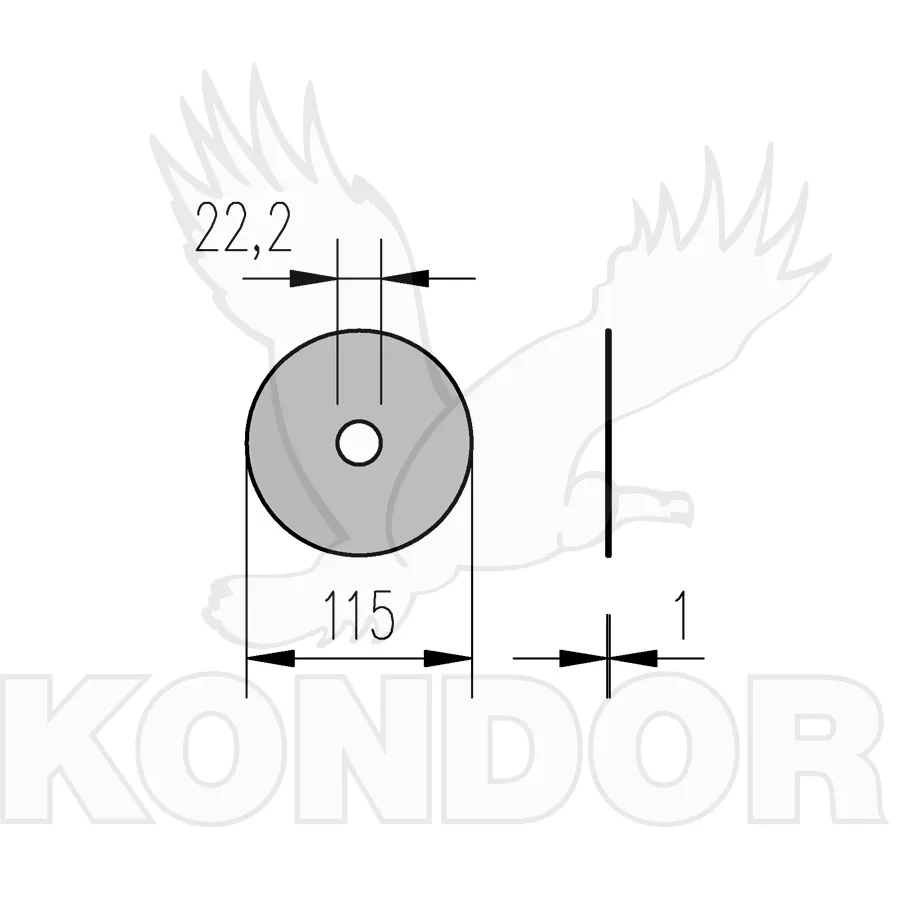 Určen pro řezání běžné černé oceli a nerezové oceli. Řezný kotouč je určen pro ruční a stacionární brusky. Průměr 115 mm. Tloušťka 1 mm. Průměr díry 22,2 mm.