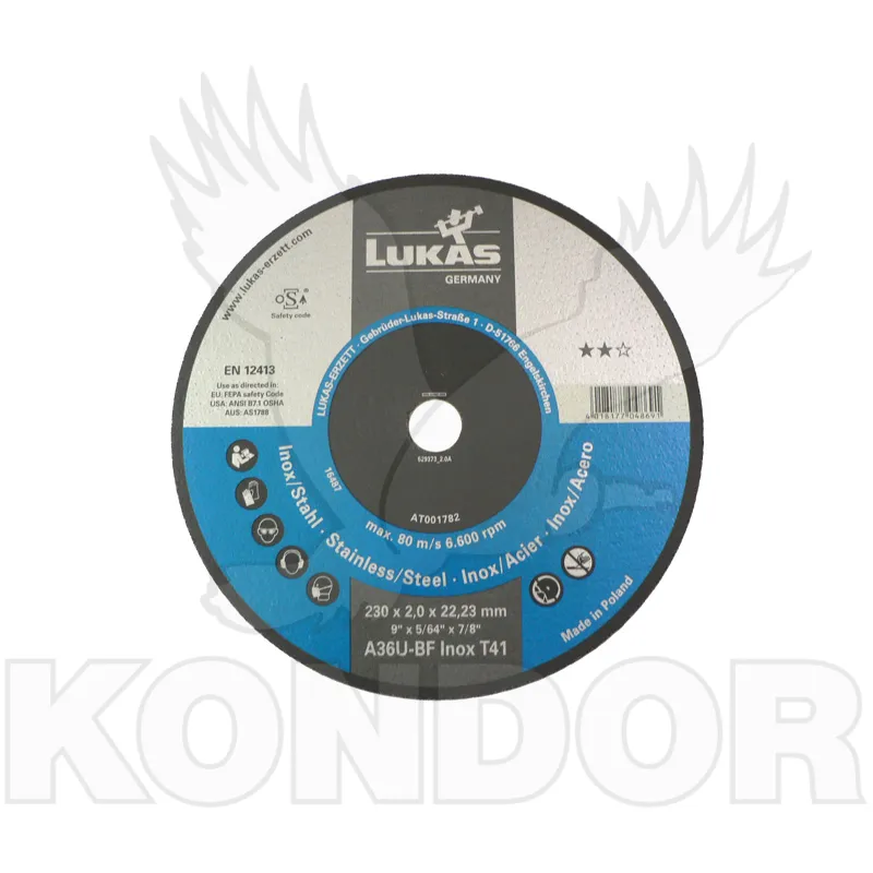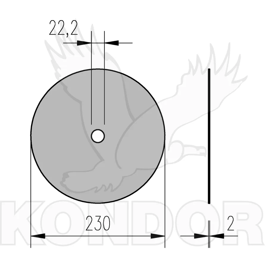 Určen pro řezání běžné černé oceli a nerezové oceli. Řezný kotouč je určen pro ruční a stacionární brusky. Průměr 230 mm. Tloušťka 2 mm. Průměr díry 22,2 mm.