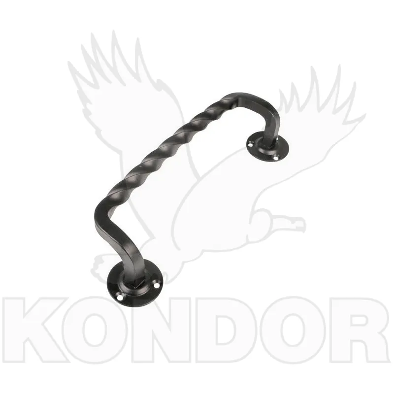 Černé dveřní madlo k přišroubování s kroucenou rukojetí. Povrch matný.