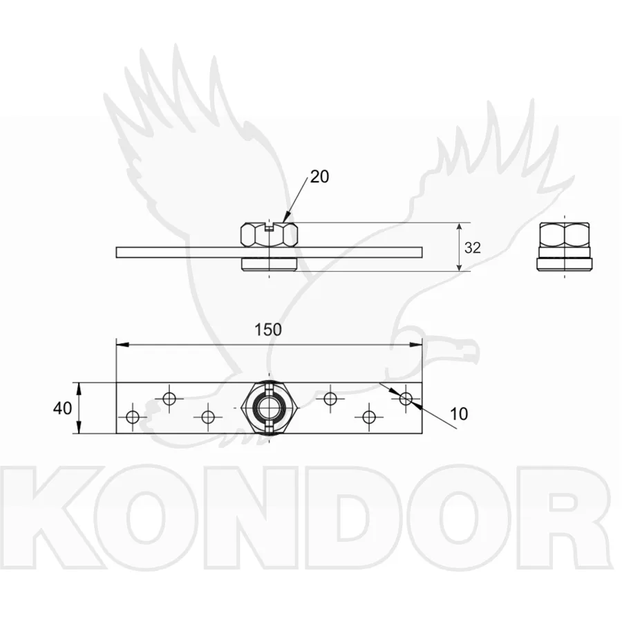 Ocelová kotvící matice 20 × 155 mm pro závěsné brány.