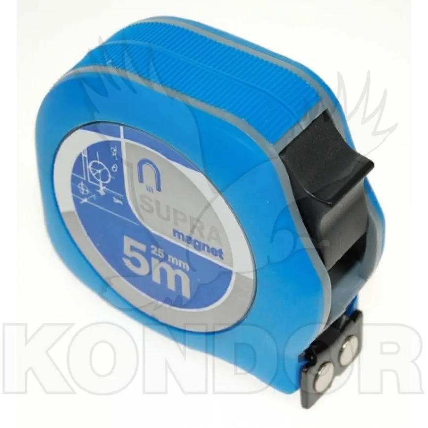 Profesionální svinovací metr SUPRA s ergonomickým tvarem. Stupnice je zakončena praktickým magnetem. Délka metru je 5 m. S šíří pásma 25 mm se vám tento metr nikdy nezlomí. Neklouzavý, pogumovaný obal z pevné hmoty. Vícevrstvá povrchová úprava. Matná povrchová úprava stupnice - nylonový povrch, výborná odolnost proti oděru. Robustní upevnění koncovky.
