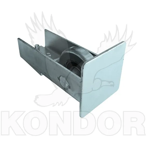 Náběhové kolečko s čelní krytkou pro posuvné samonosné brány. Určeno pro profil 60 × 60 × 4 mm. Žárově zinkované.
