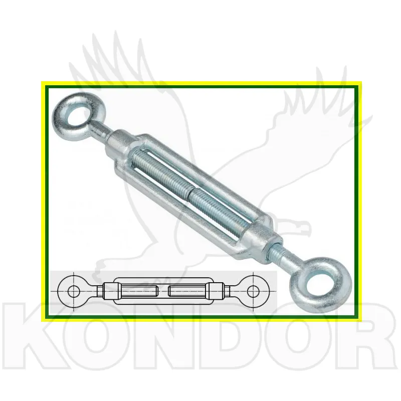 Napínací matice průměru M 10 pro tyče, lana, řemeny aj. Uchycení pomocí dvou ok.