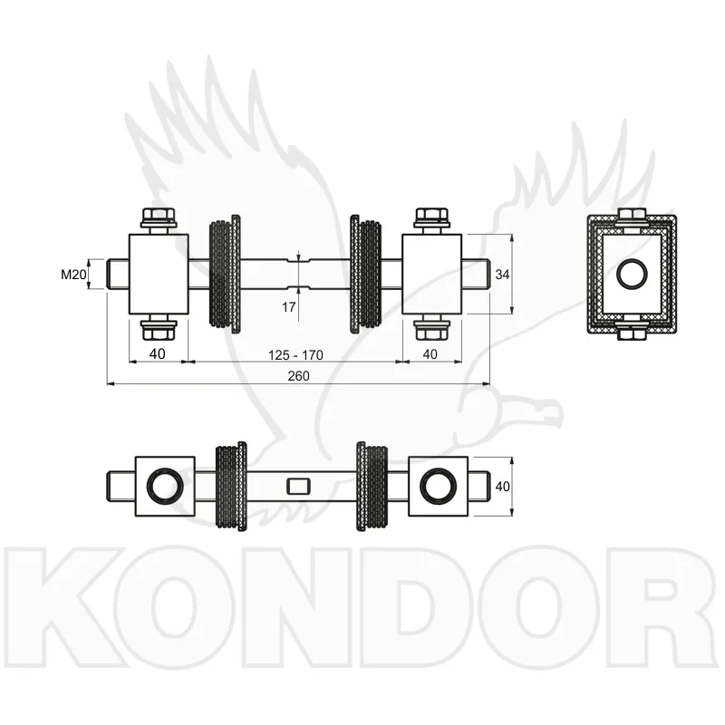 Tenzní tyč s regulací pro vypnutí konstrukce nesené brány do správné polohy.