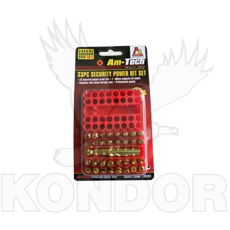 Sada 33 ks nástavců Torx (s dírkou) a křížových bitů v plastovém pořadníku.