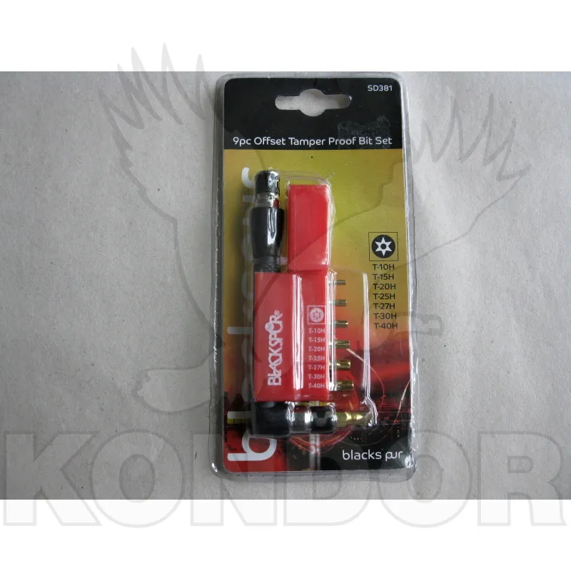 Sada 9 nástavců (bitů) Torx a držáků v PVC obalu.