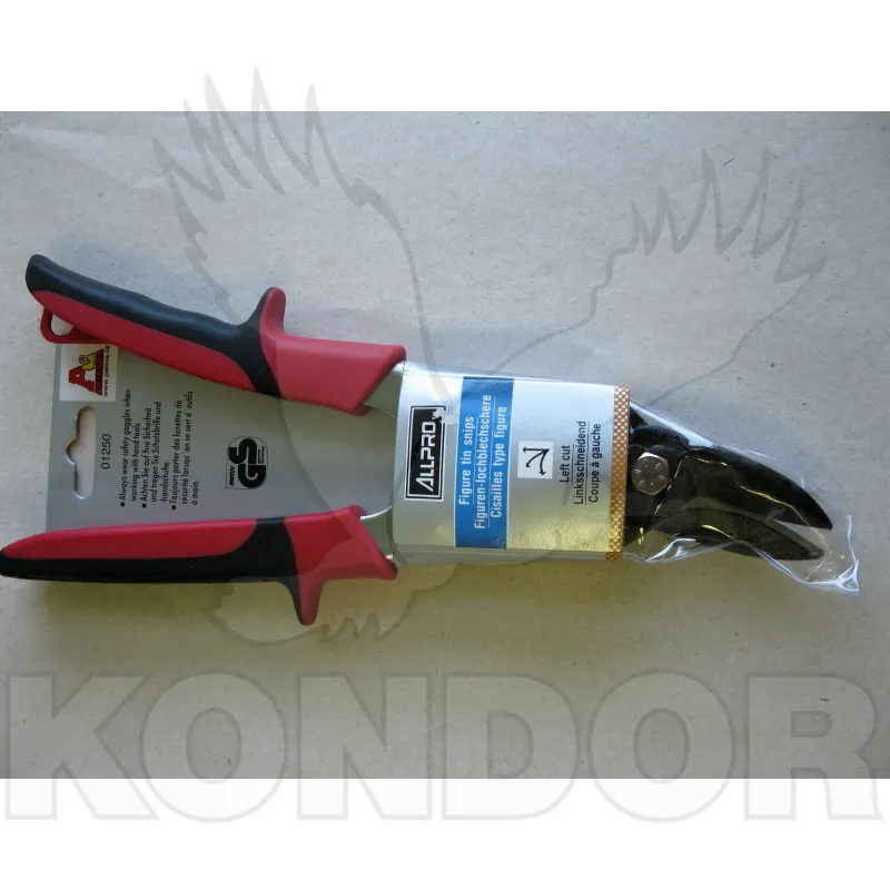Profesionální nůžky na stříhání plechů s pohodlnou gumovou rukojetí. Levé - pro rovný střih, úhly a levotočivé oblouky.