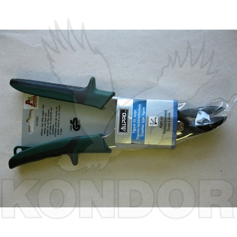 Profesionální nůžky na stříhání plechů s pohodlnou gumovou rukojetí. Pravé - pro rovný střih, úhly a pravotočivé oblouky.