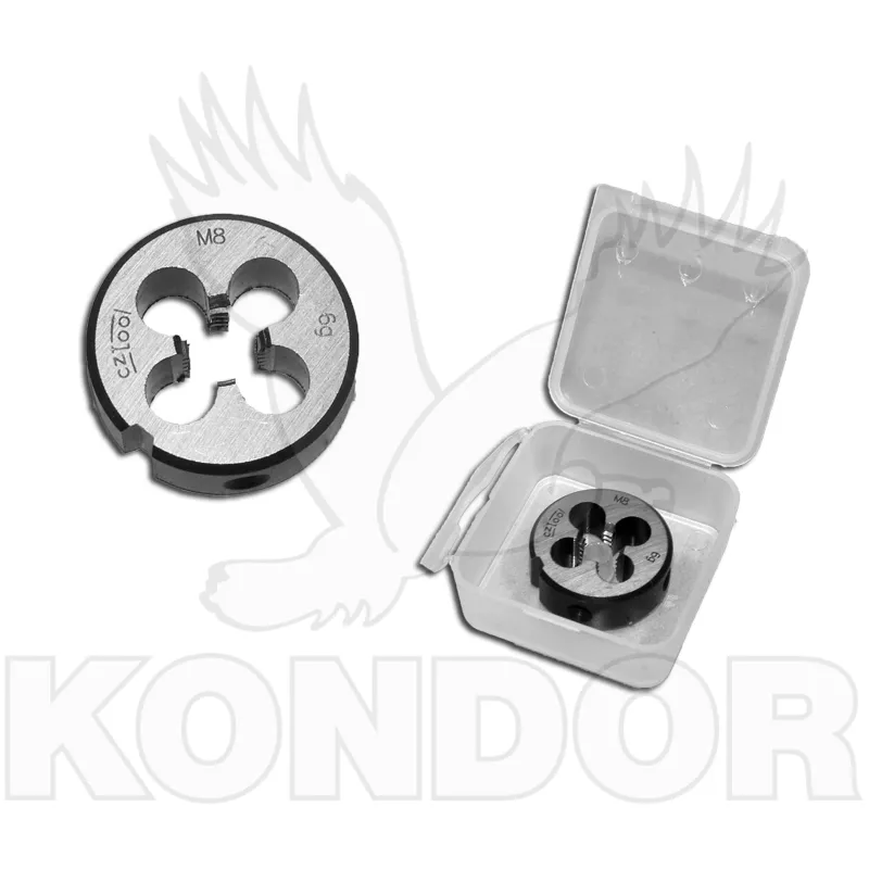 Nástroj pro vytváření vnějšího závitu nebo pročištění původního závitu kulatin o velikosti M 8 se standardním stoupáním 1,25 mm. Očko je vyrobeno z kvalitní nástrojové oceli HSS.