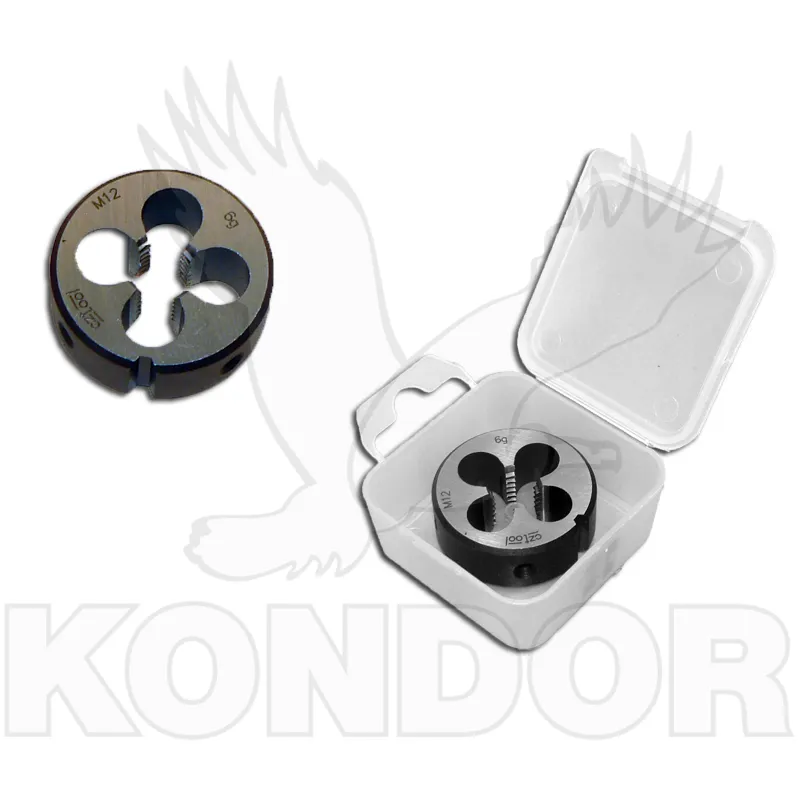 Nástroj pro vytváření vnějšího závitu nebo pročištění původního závitu kulatin o velikosti M 12 se standardním stoupáním 1,75 mm. Očko je vyrobeno z kvalitní nástrojové oceli HSS.