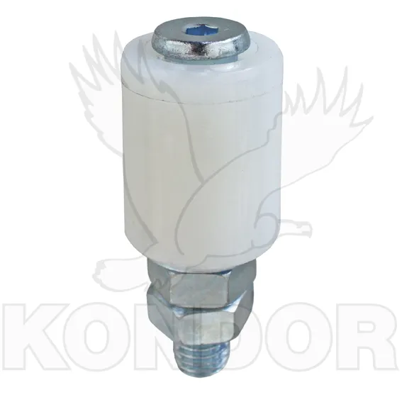 Bílé plastové kolečko (oliva) horního vedení pro samonosné brány. Pozinkovaná ocel. Průměr 42 mm.