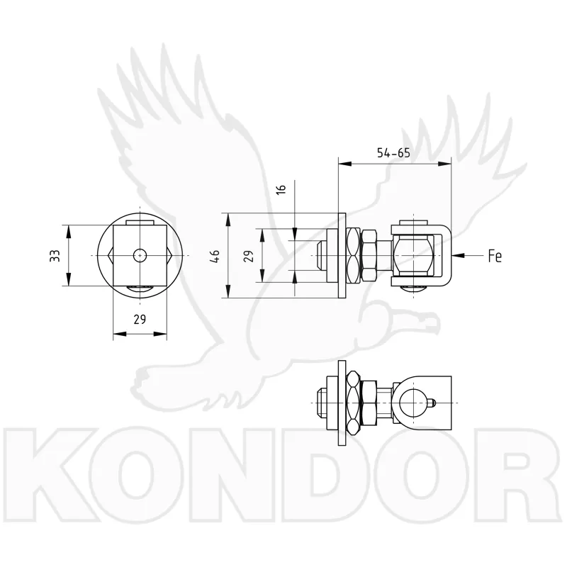 Nastavitelný pozinkovaný závěs s navařitelnou podložkou. Závit M16. Části na přivaření bez povrchové úpravy. Jednoduchá regulace závěsu pomocí otočné matice. Maximální zatížení křídla brány je 120 kg.