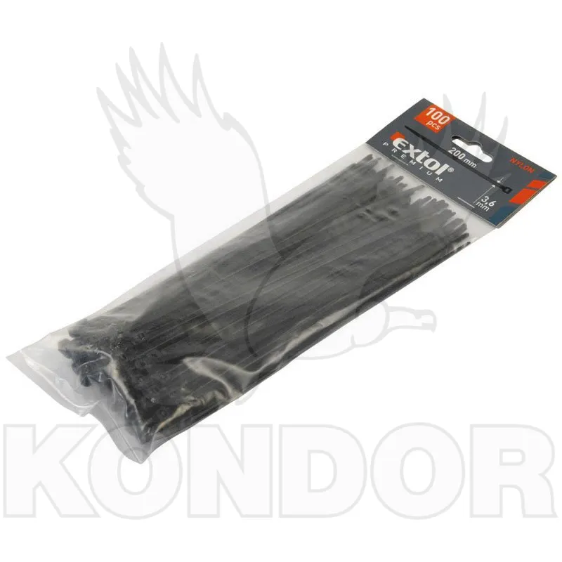 Pásky stahovací černé 380 x 4,8 mm z nylonového materiálu, 100 ks v balení.