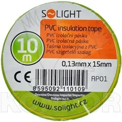Žlutozelená izolační páska délkou 10 m, šířkou 15 mm a sílou 0,13 mm.