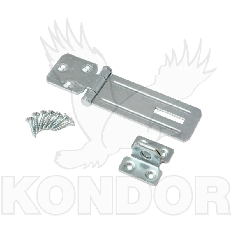 Jednoduchý mechanismus k zabránění zavírání dveří. Součástí je oko pro visací zámek. Pozinkovaný materiál. Délka 100 mm.