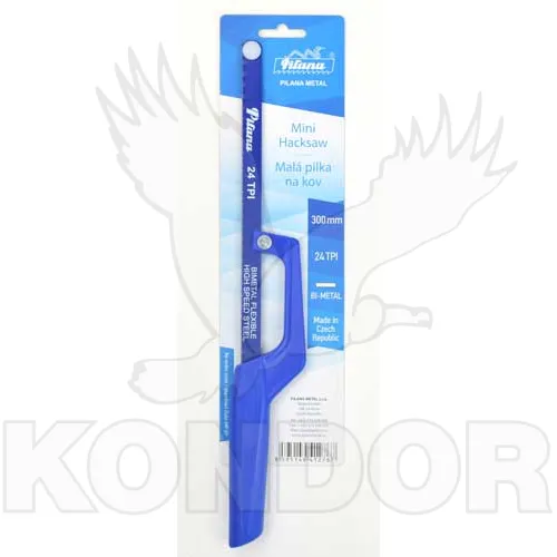 Malá pilka na kov s plastovou ergonomickou rukojetí s opěrkou palce pro pohodlné řezání. Pilka je osazena bimetalovým pilovým listem, který je velmi odolný proti ohýbání a prasknutí. Tento list je v rukojeti upnutý kovovým šroubem s podložkou. Pilka je vhodná pro použití na obtížně přístupných místech.