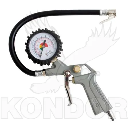 Pistole pro plnění pneumatik stlačeným vzduchem. S vestavěným manometrem pro kontrolu tlaku.