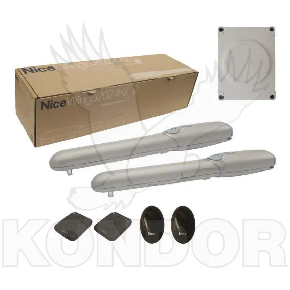Elegantní řešení vaší příjezdové cesty, sada pohonu značky NICE WINGO2024-ZKIT rozpohybuje každou dvoukřídlou bránu do délky 4 m a hmotnosti do 400 kg na obě křídla (doporučeno 200 kg = 100 kg na každé křídlo).