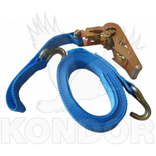 Popruh z polyesteru s ráčnou a dvojitým hákem z ocelového drátu.